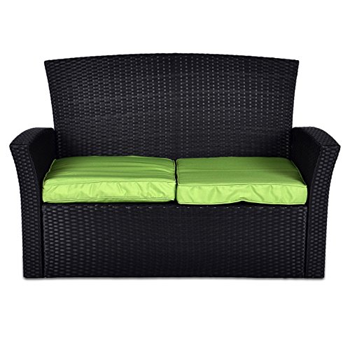 Rattan Set 4tlg mit Glastisch grün Garnitur Gartenmöbel Sitzgruppe Poly Rattan inklusive höhenverstellbare Füße und Sicherheitsglas 4-sitzer 4-teilig