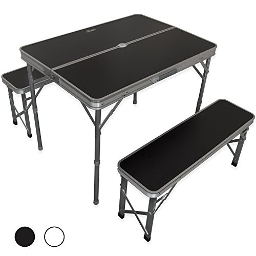 Andes Camping-Möbelset aus Picknick-Tisch und Bänken - faltbar - transportabel - Aluminium - Schwarz