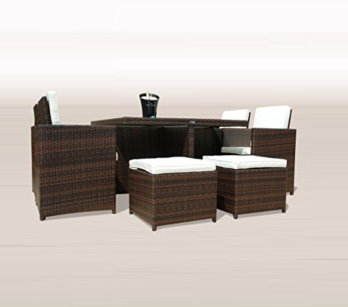 Vorteile dieser hochwertigen Polyrattan Essgruppe auf einen Blick:-Platzsparendes Würfelsystem