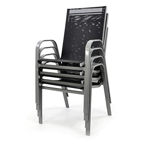 Nexos Gartenstuhl 4er Set Stapelstuhl Stapelsessel Hochlehner anthrazit schwarz Terrasse Discount !!