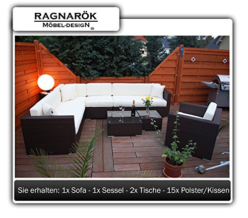 PolyRattan Lounge DEUTSCHE MARKE -- EIGNENE PRODUKTION 7 Jahre GARANTIE Garten Möbel incl. Glas und Polster Ragnarök-Möbeldesign braun Gartenmöbel Big SALE