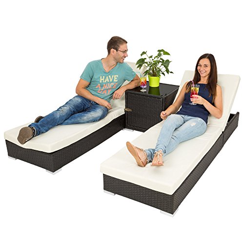 TecTake 2x Aluminium Polyrattan Sonnenliege + Tisch Gartenmöbel Set - schwarz - inkl. 2 Bezugsets + Schutzhülle, Edelstahlschrauben Promo Offer