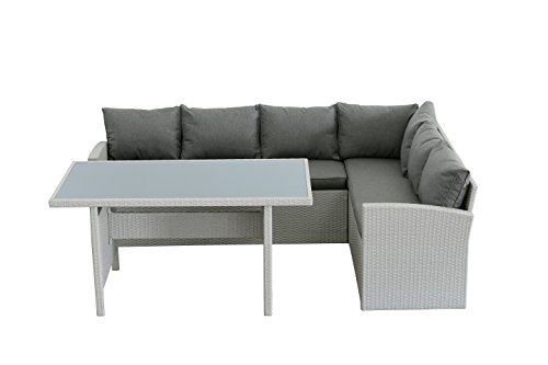 Hohe Dinning Poly Rattan Lounge inkl. Kissen "Milos" auch spiegelverkehrt nutzbar aus dem Hause Mandalika Garden